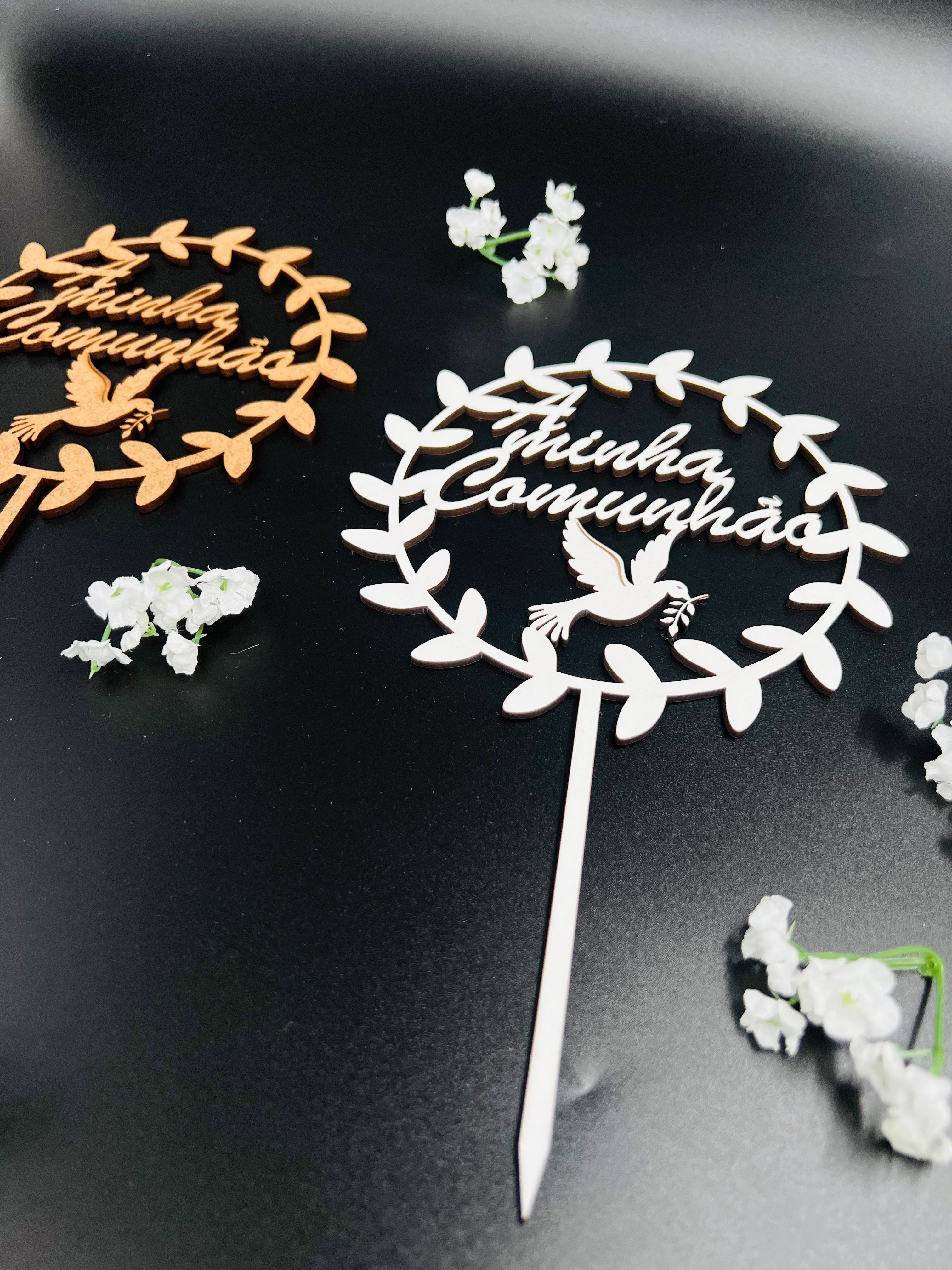 Topo de bolo em madeira “a minha comunhão” 25cm